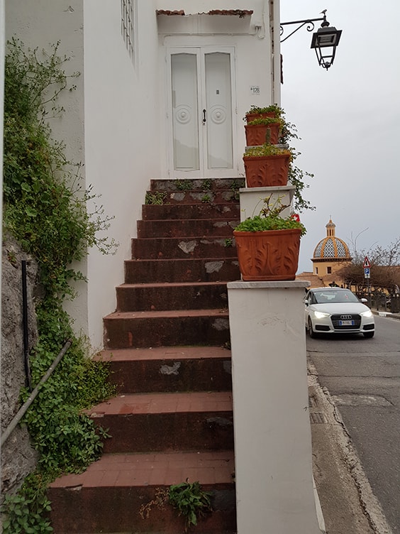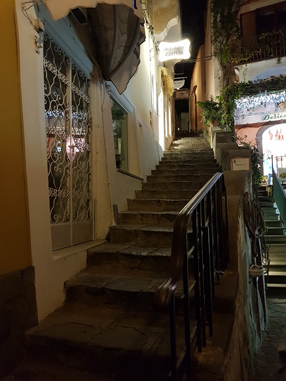 מדרגות שמובילות לחוף פוזיטאנו השוקק חיים.