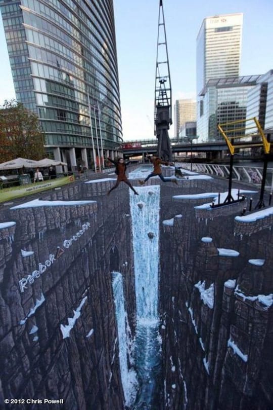 ציור מדהים בתלת מימד על מדרכה.