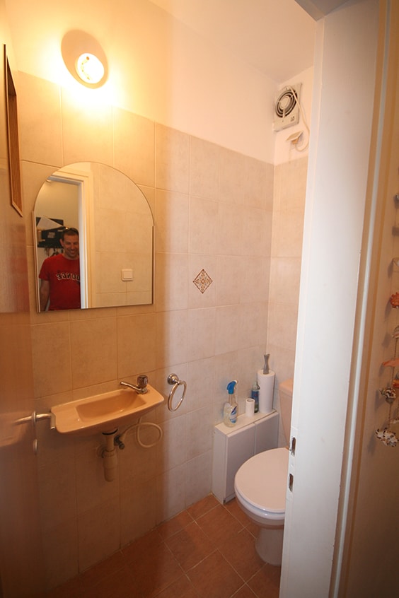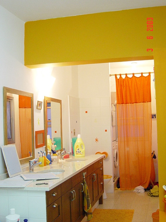 לפני השיפוץ- חדר רחצה מיושן ללא איחסון