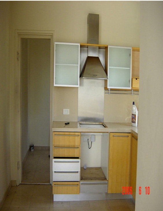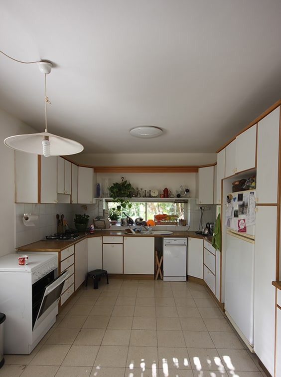 לפני השיפוץ- המטבח קטן ומתפרק ומאחוריו חדר שאינו מנוצל