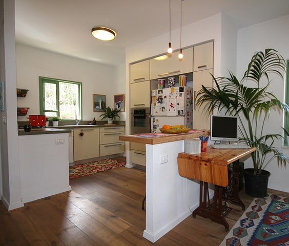 אחרי השיפוץ- החדר הנוסף סופח לחלל המטבח ואיפשר הצבת ארונות