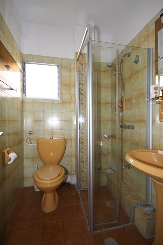 לפני השיפוץ- חדר רחצה כתמתם ולא אטרקטיבי