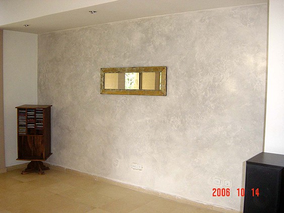 לפני השיפוץ- קיר בחיפוי טיח ווגה ללא כל אלמנט עיצובי