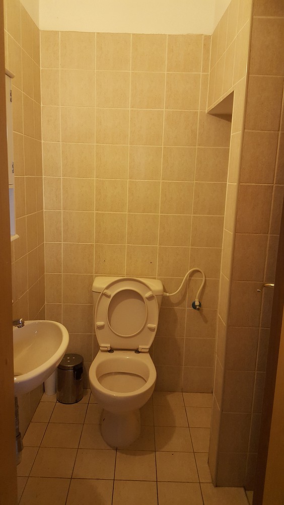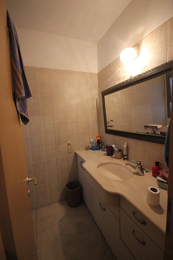 לפני שיפוץ-האסלה מקבילה לארון וחוסמת את הגישה לאמבטיה