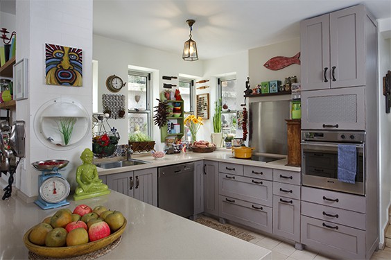 אחרי שידרוג- לדלתות המטבח הקיימות נוספו קרניזים והוא נצבע מחדש