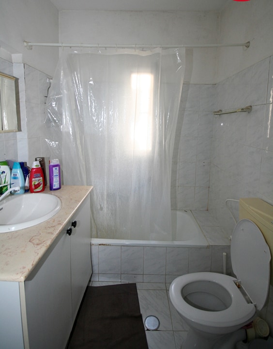 לפני שיפוץ– חדר רחצה מיושן בגווני בז’