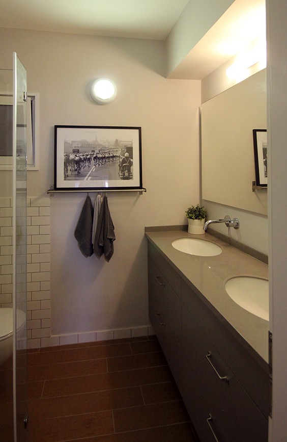אחרי שיפוץ-ארון רחצה גדול הכולל שני כיורים תוכנן לפרטיו ומוקם בקיר הנגדי