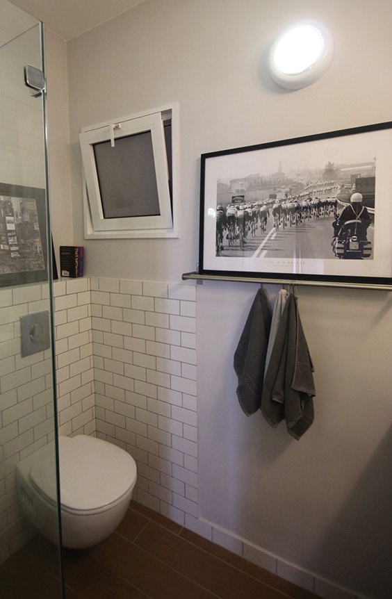 אחרי שיפוץ- האסלה מוקמה מחדש מתחת לחלון ולצידה מקלחון מרווח