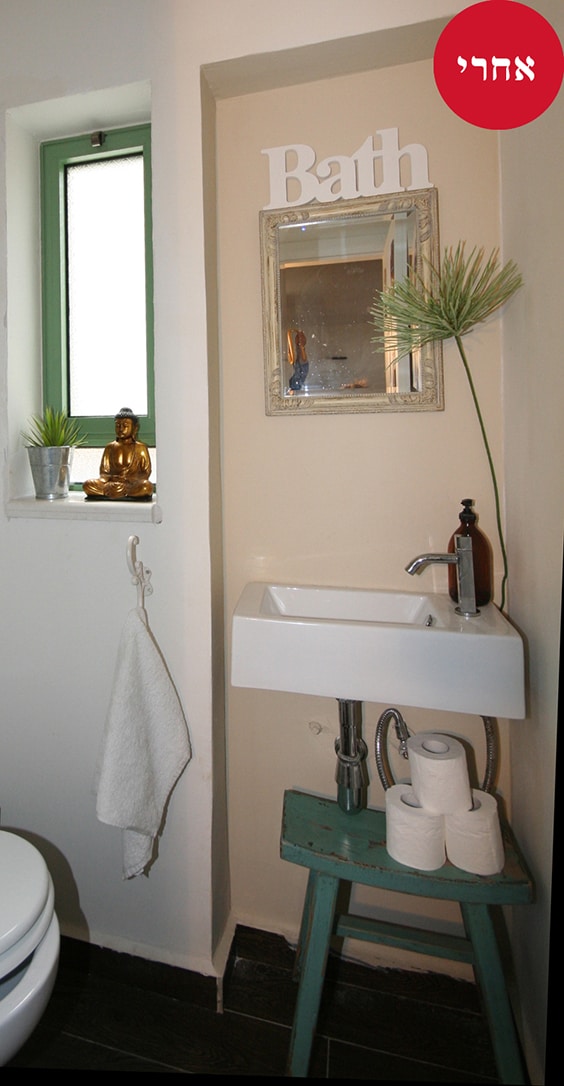 אחרי שיפוץ- הוחלפו הכלים הסניטריים, הריצוף, החיפוי והחלון וניתן טאצ’ אישי