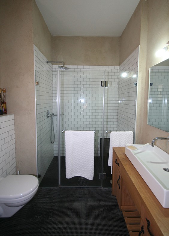אחרי שיפוץ- כיור הרחצה הועתק למיקום המקלחון לקבלת חלל מרווח ונעים
