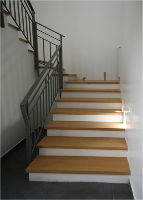 אחרי הלבשה– שלח מדרגות מעץ אלון לצד מעקה באפור גרפיט-שילוב מושלם