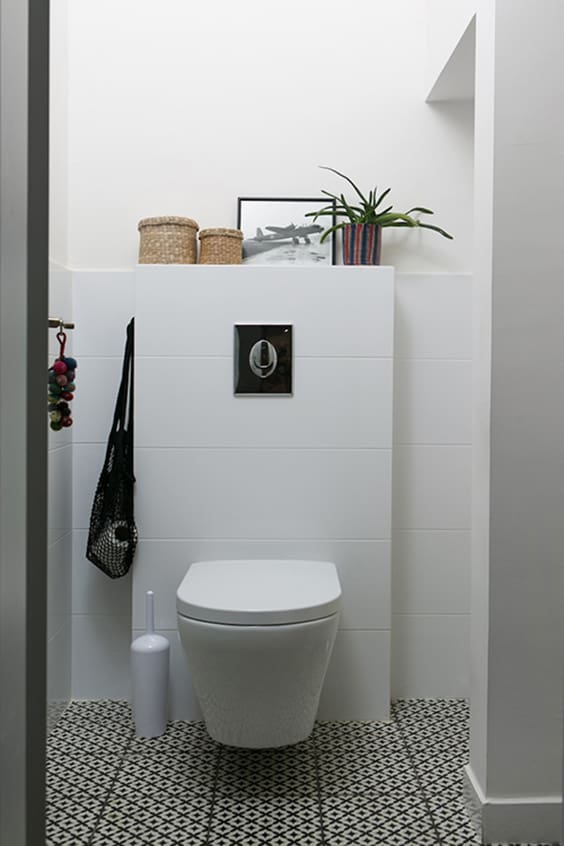 אחרי שיפוץ- אסלה תלויה הוצבה בהמשך לארון כיור חדש ומרחף לקבלת תחושת מרחב